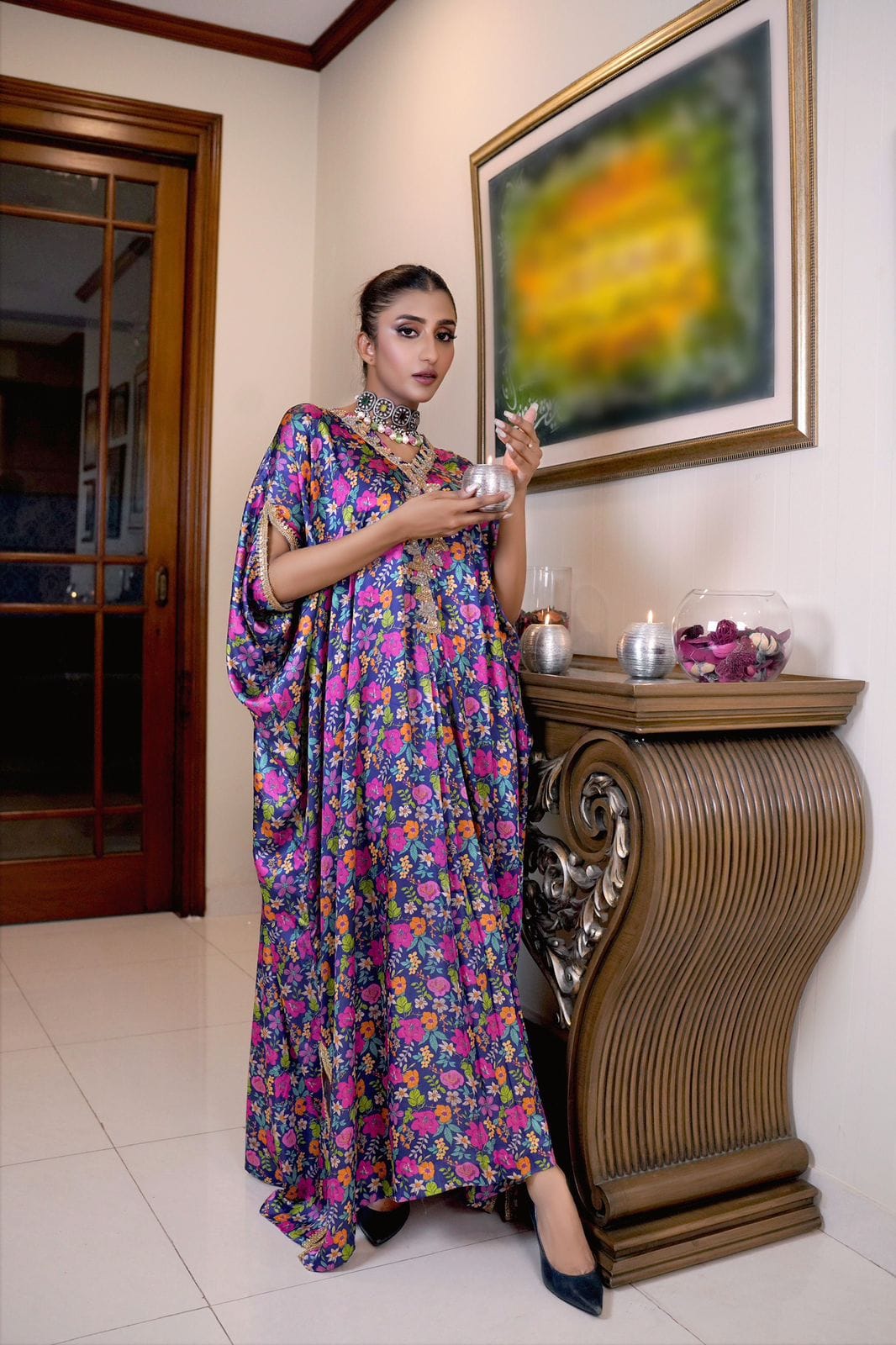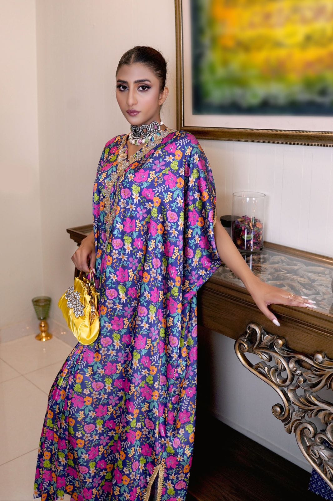 Crazy Kaftan with Golden Neck Embroidery! 🌟