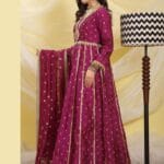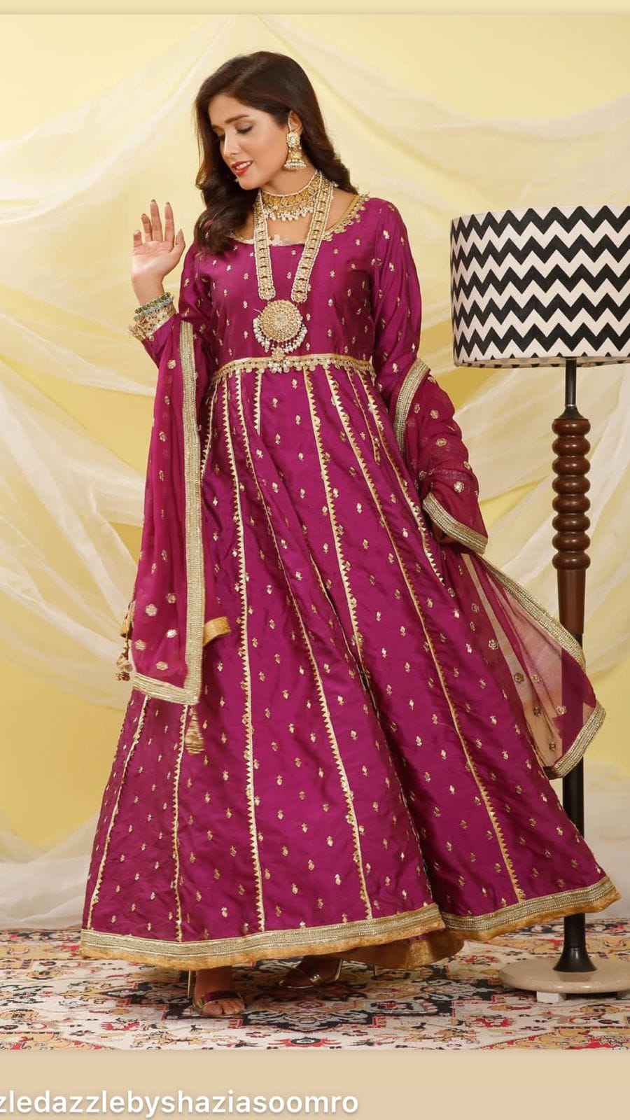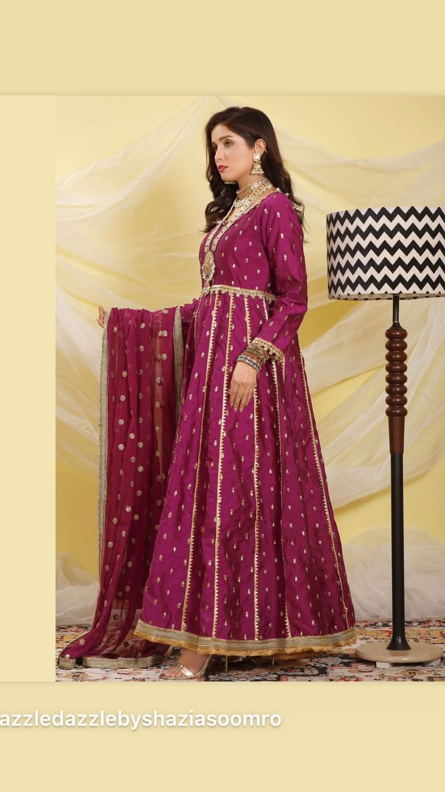 Multi paneled big flaired Anarkali with Zari & tilla work paired with chiffon duppta.