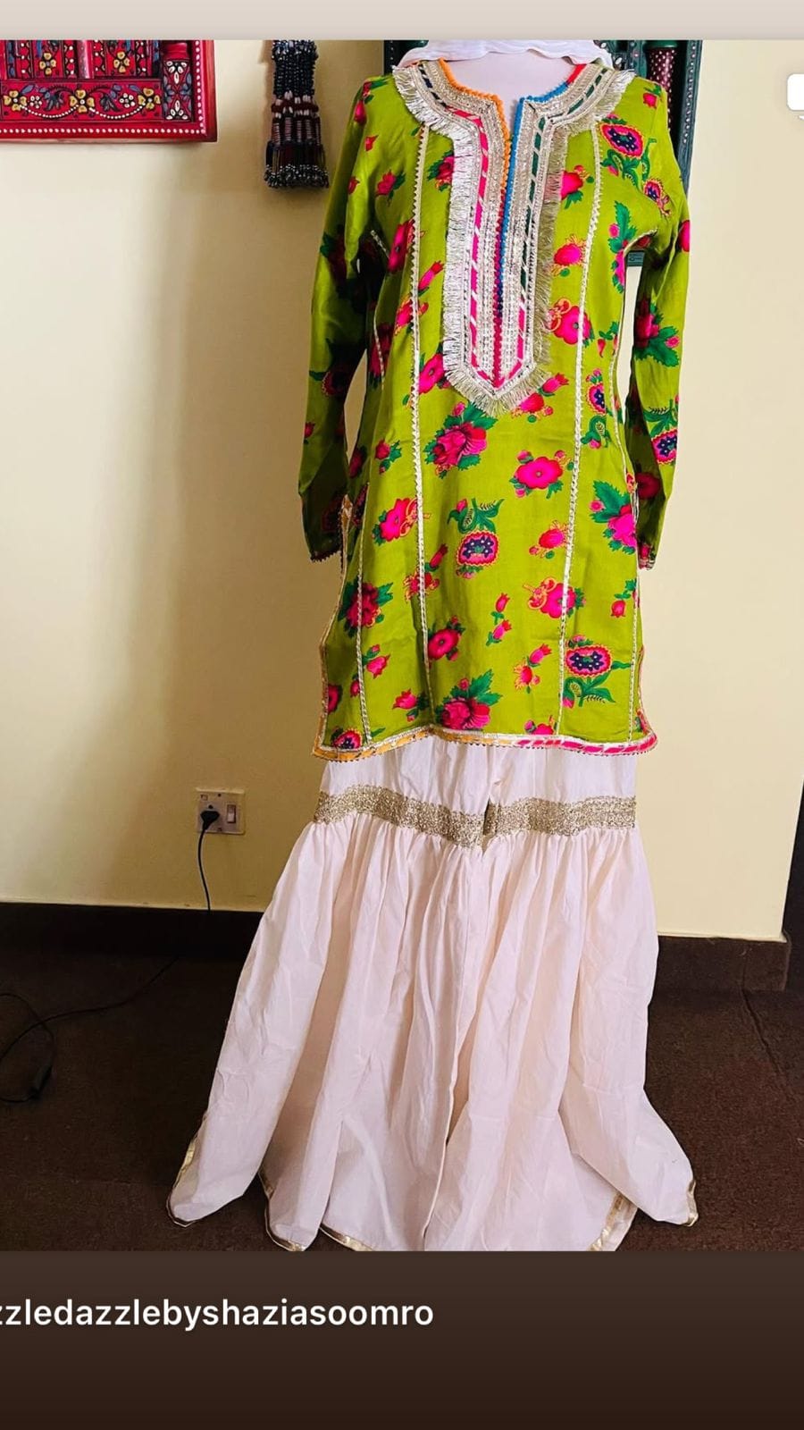 Introducing our exquisite festive gharara collection featuring vintage Cheent prints, embellished with intricate gotta work and adorned with handmade tassels! Elevate your celebrations with these timeless pieces that blend heritage and craftsmanship effortlessly. ✨🌟